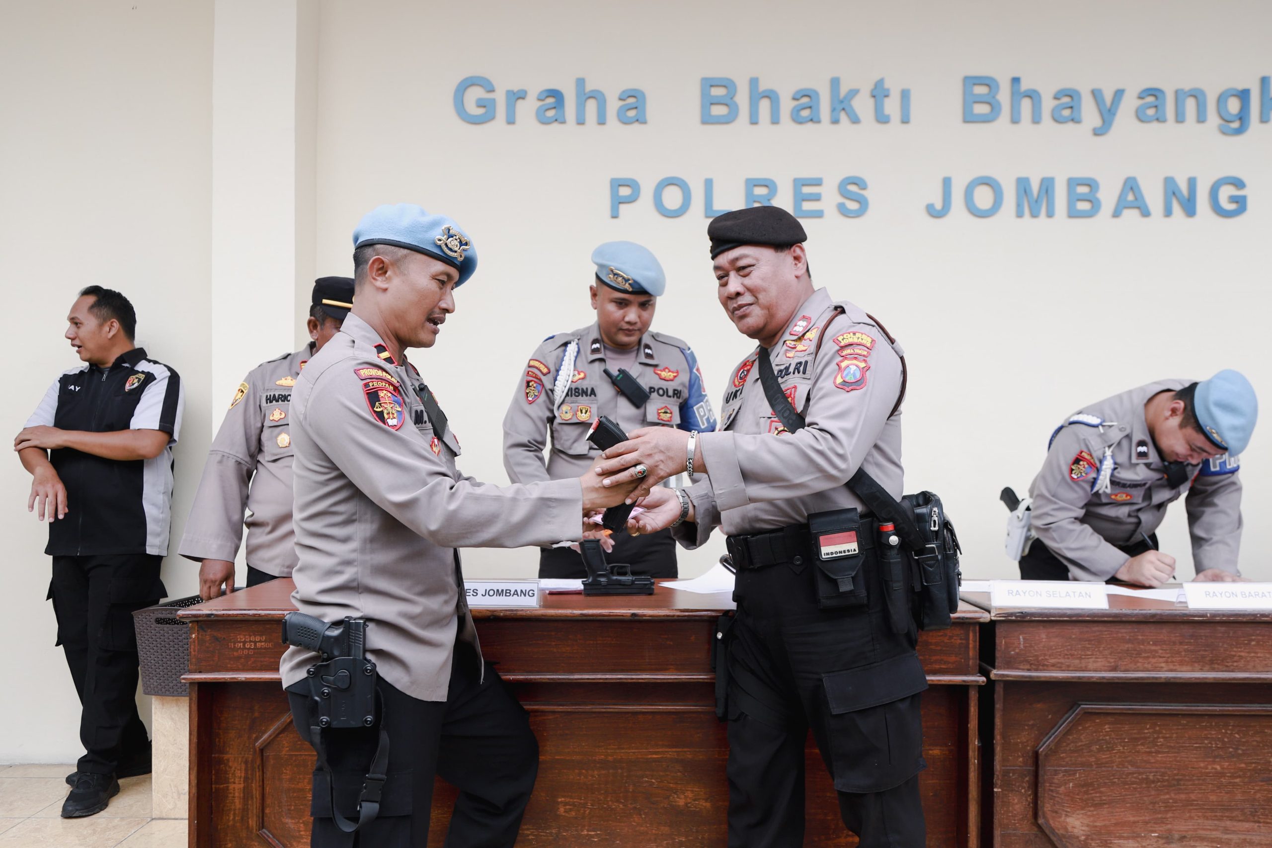 Seksi Propam Polres Jombang memeriksa 101 senjata api (Senpi) milik anggota. Pemeriksaan ini dilakukan untuk mencegah penyalahgunaan senpi dalam bertugas.