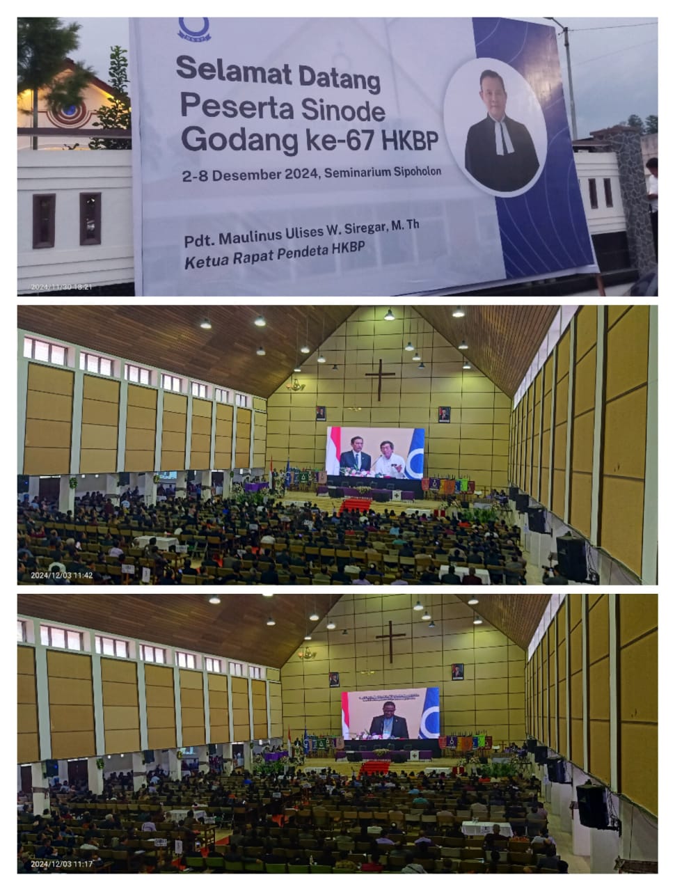 Sipoholon Selasa 2 Desember 2024, awalnya dimulai prosesi kebaktian yang dibawakan Pendeta Prof Binsar Pakpahan Phd menyampaikan khotbah dari nats “supaya kamu dibaharui di dalam roh dan pikiranmu” efesus 4 : 23. Selesai kebaktian, Sekjen Dr Victor Tinambunan selaku ketua umum Panitia sinode melaporkan pelaksanaan sinode ke 67, terimakasih kepada semuanya panitia yang terlibat mulai dari TNI, Polri, dan pihak PLN sehingga sinode ini nyaman dan selamat bersinode. Ketua umum PGI Jecky Manuputi, salam dengan bangga saya mengatakan semoga HKBP menjadi berkat bagi Dunia, kita sangat bersyukur memiliki HKBP dan semoga HKBP memiliki pemimpin yang teladan.