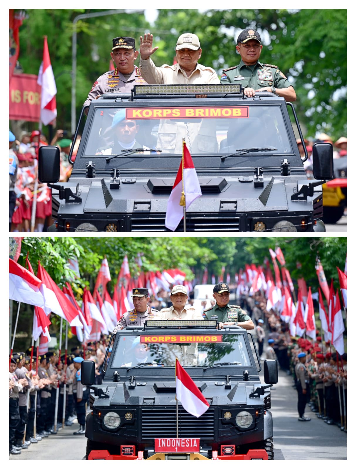 Setelahnya, Presiden Prabowo menaiki kendaraan taktis Maung menuju Auditorium Cendrawasih, Graha Cendekia, Akpol. Sepanjang perjalanan, Presiden Prabowo disambut jajaran TNI-Polri, para pelajar, hingga masyarakat yang berdiri di sepanjang seraya menyanyikan lagu dengan semangat.