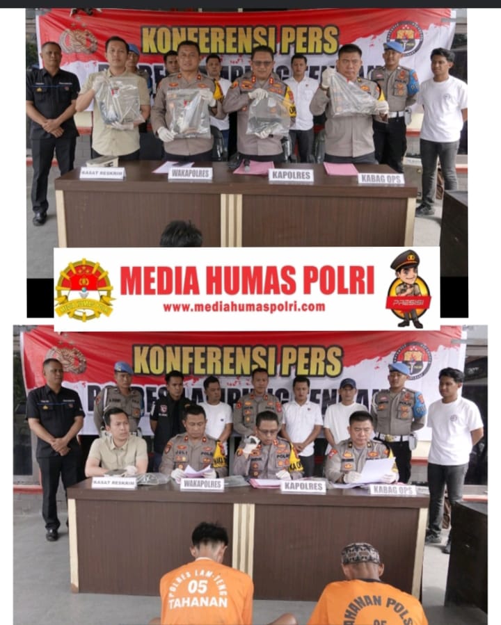 Jajaran Polres Lampung Tengah, Polda Lampung menggelar konferensi pers terkait keberhasilan pengungkapan kasus menonjol penyalahgunaan senjata api rakitan (Senpira) dan perbuatan cabul. Sabtu (28/12/24) siang