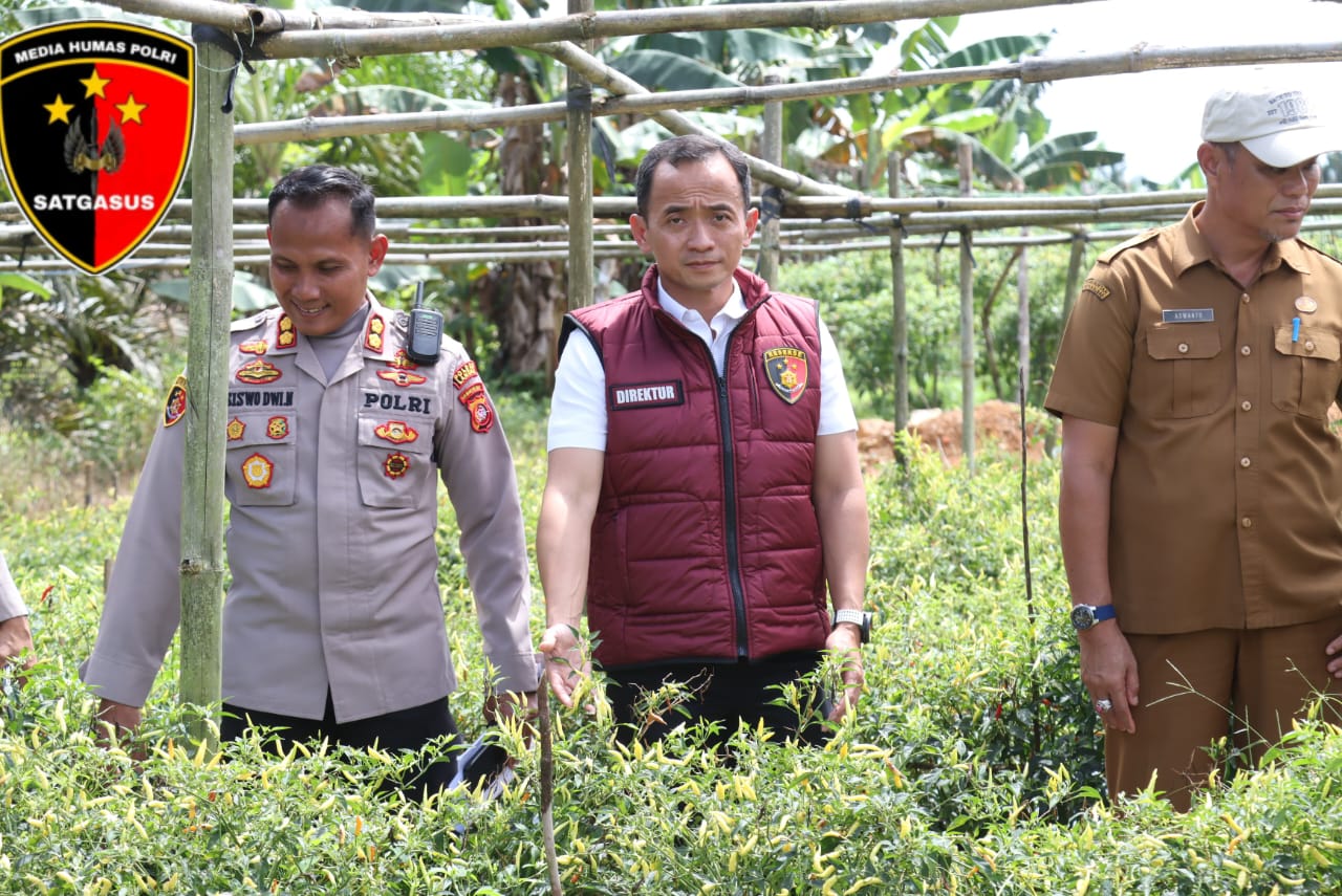 Ketua Tim Asistensi Gugus Tugas Polri Kalbar Kombes Pol Bowo Gede Imantio, S.I.K., M.H., memberikan apresiasi atas pemanfaatan pekarangan oleh masyarakat Desa Amboyo Inti.