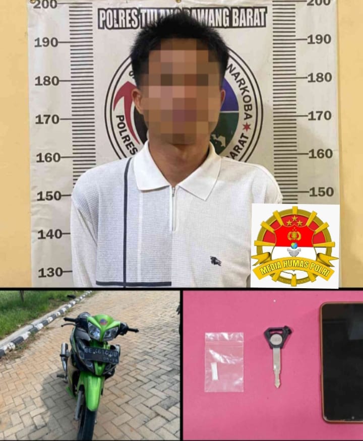 Terduga pelaku inisial AA (32) pria asal Tiyuh karta Kec. Tulang bawang udik Kab. Tulang Bawang Barat, Ujar Kapolres Tulang Bawang Barat AKBP Sendi Antoni, S.I.K., M.I.K. melalui Kasat Res Narkoba Tubaba AKP Jepri Syaifullah, S.H., M.H.” Senin ( 27/01/2025)”Selain mengamankan terduga pelaku, Tim Opsnal Sat Narkoba juga menyita barang bukti berupa : 1 (satu) bungkus plastik klip ukuran kecil yang didalamnya berisi narkotika diduga jenis sabu, 1 (satu) unit handphone merk VIVO V2043 warna biru dengan nomor Imei 1 :864577057108419 dan Imei 2 :864577057108401, 1 (satu) unit sepeda motor merk YAMAHA JUPITER Z warna Hijau Nopol:BE 4614 QU, Ujar Jepri