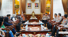 Kapolri Jenderal Listyo Sigit Prabowo menerima audiensi Pengurus Besar Nahdlatul Ulama (PBNU) di Mabes Polri, Jakarta Selatan, Rabu (12/2/2025).