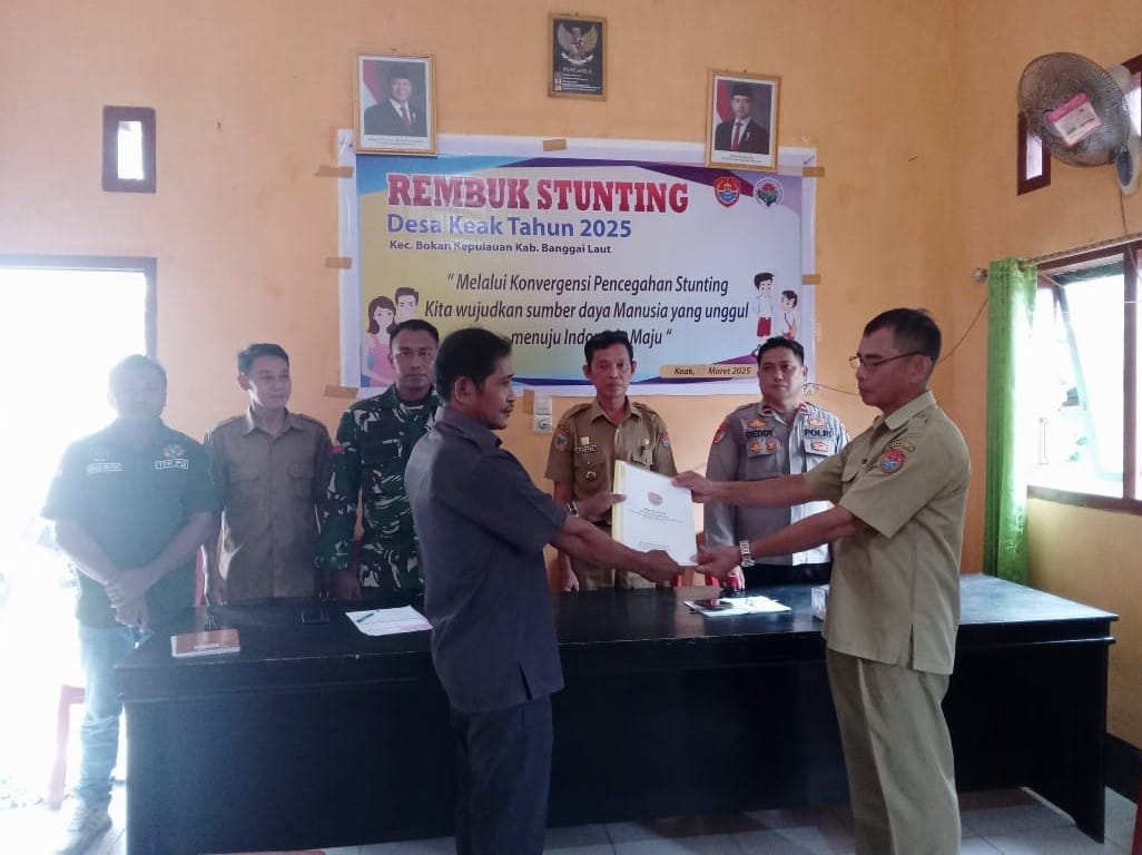 Kamis, (20/3/2025) Ketua BPD desa Keak, menyerahkan secara resmi hasil urun rembuk stunting tahun 2025 oleh Wakil Ketua BPD kepada Kepala Desa Keak. (Susanto)