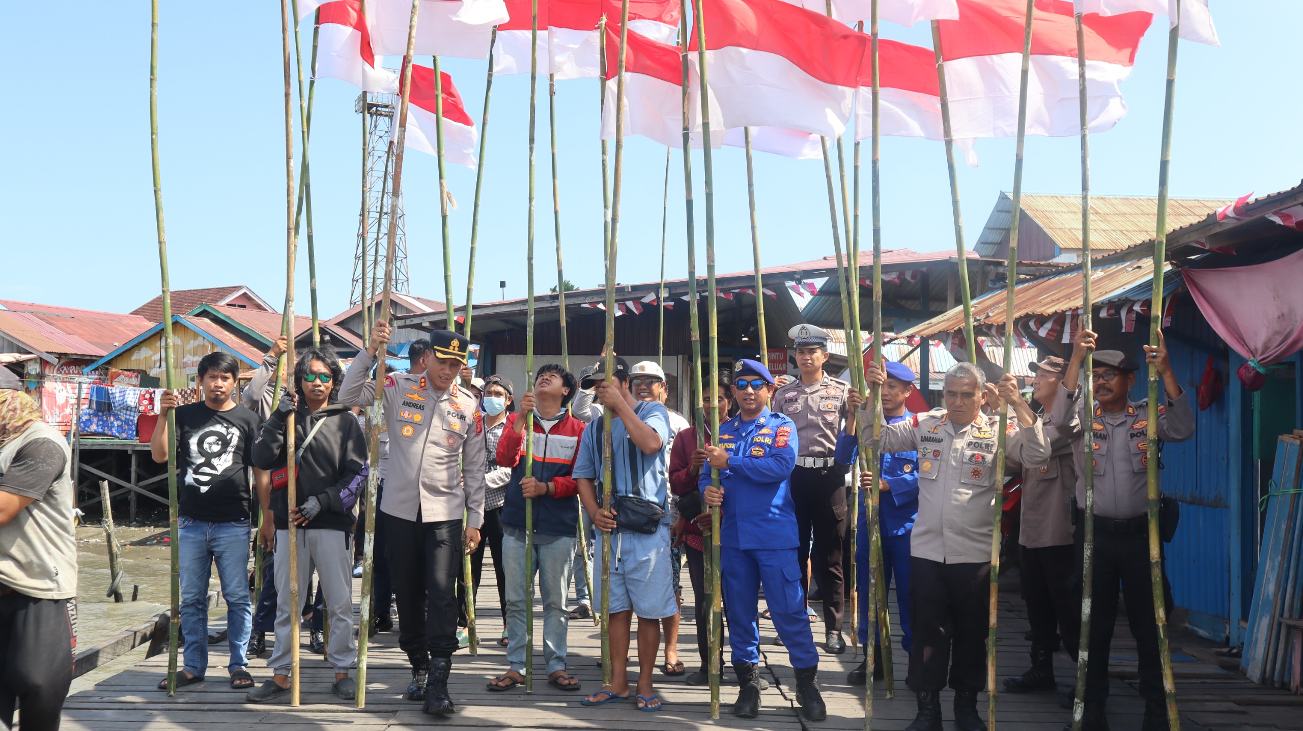 Ratusan bendera dipasang secara simbolis oleh personel gabungan, menghiasi pelabuhan yang menjadi pintu masuk dan keluar warga pesisir. Lebih dari sekadar dekorasi, kehadiran bendera di tempat strategis ini menjadi pengingat moral bagi warga untuk terus menjaga kebersamaan, menghargai jasa para pahlawan, serta memperkuat jati diri bangsa di tengah dinamika zaman.