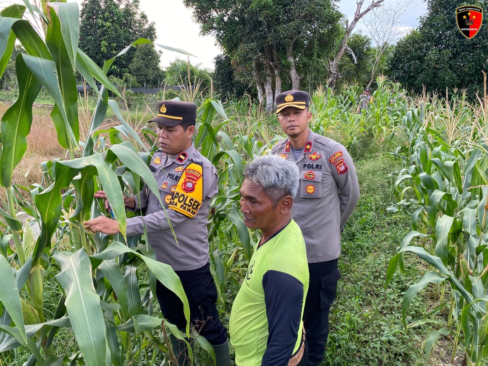 Waka Polres Ketapang Kompol Frits Orlando Siagian,S.I.K.,M.H bersama Kapolsek Muara Pawan Ipda Lukman beserta anggota lainnya melaksanakan pengecekan lahan jagung di Desa Suka Maju , Kecamatan Muara Pawan, Kabupaten Ketapang, Minggu (11/05/2025).