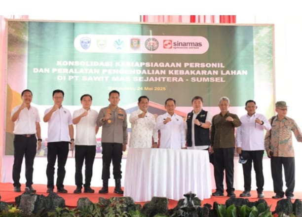 Berkunjung di PT Sawit Mas Sejahtera pada Sabtu (24/5/2025) maksud kunjungan kerja Menteri Lingkungan Hidup ini dalam rangka konsolidasi lapangan kesiapsiagaan dan peralatan pengendalian kebakaran lahan di Provinsi Sumatra Selatan, terkhususnya juga di Kabupaten Banyuasin.