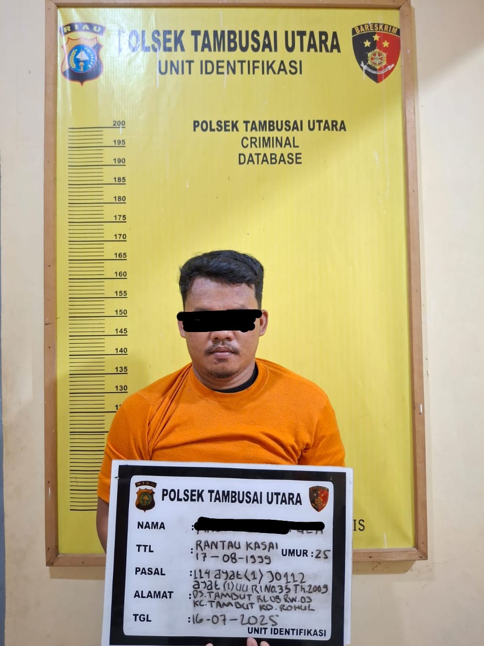 Kapolsek Tambusai Utara, AKP Tony Prawira, S.Tr.K, S.I.K, MH, mengimbau masyarakat untuk terus berperan aktif dalam memberantas peredaran narkotika di wilayah Rokan Hulu. Saat ini, tersangka dan barang bukti telah dibawa ke Polsek Tambusai Utara untuk proses hukum lebih lanjut. *(Syahril Damanik)
