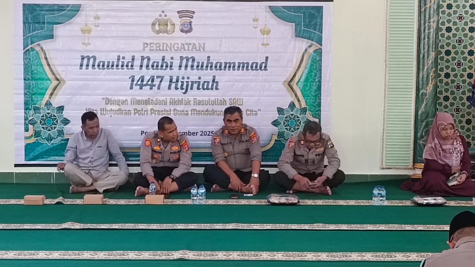 Polres Poso menggelar peringatan Maulid Nabi Muhammad SAW 1447 Hijriah dengan tema “Dengan meneladani Akhlak Rasulullah kita wujudkan Polri Presisi guna mendukung Asta Cita”, Kamis (04/09/2025).