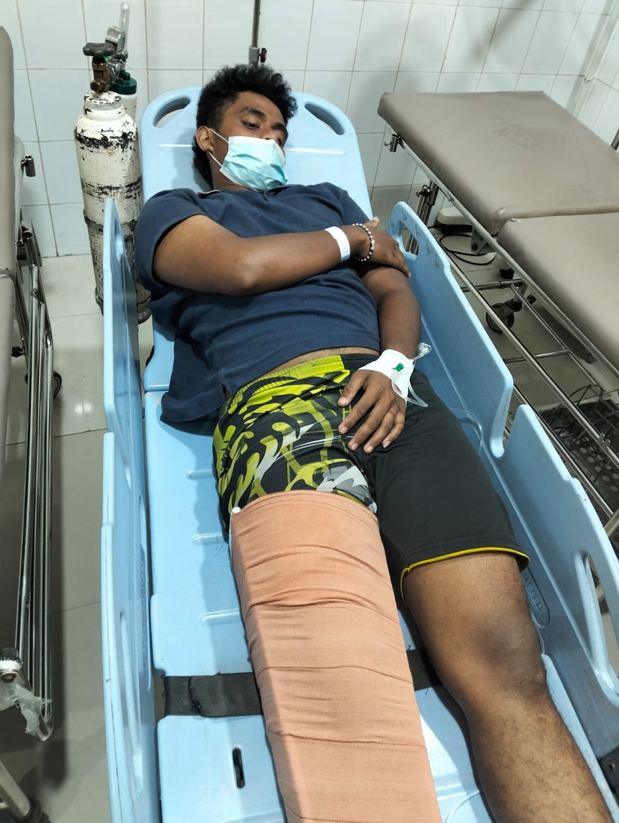 Dari hasil rontgen, kaki sebelah kanan korban mengalami retak/patah tulang.