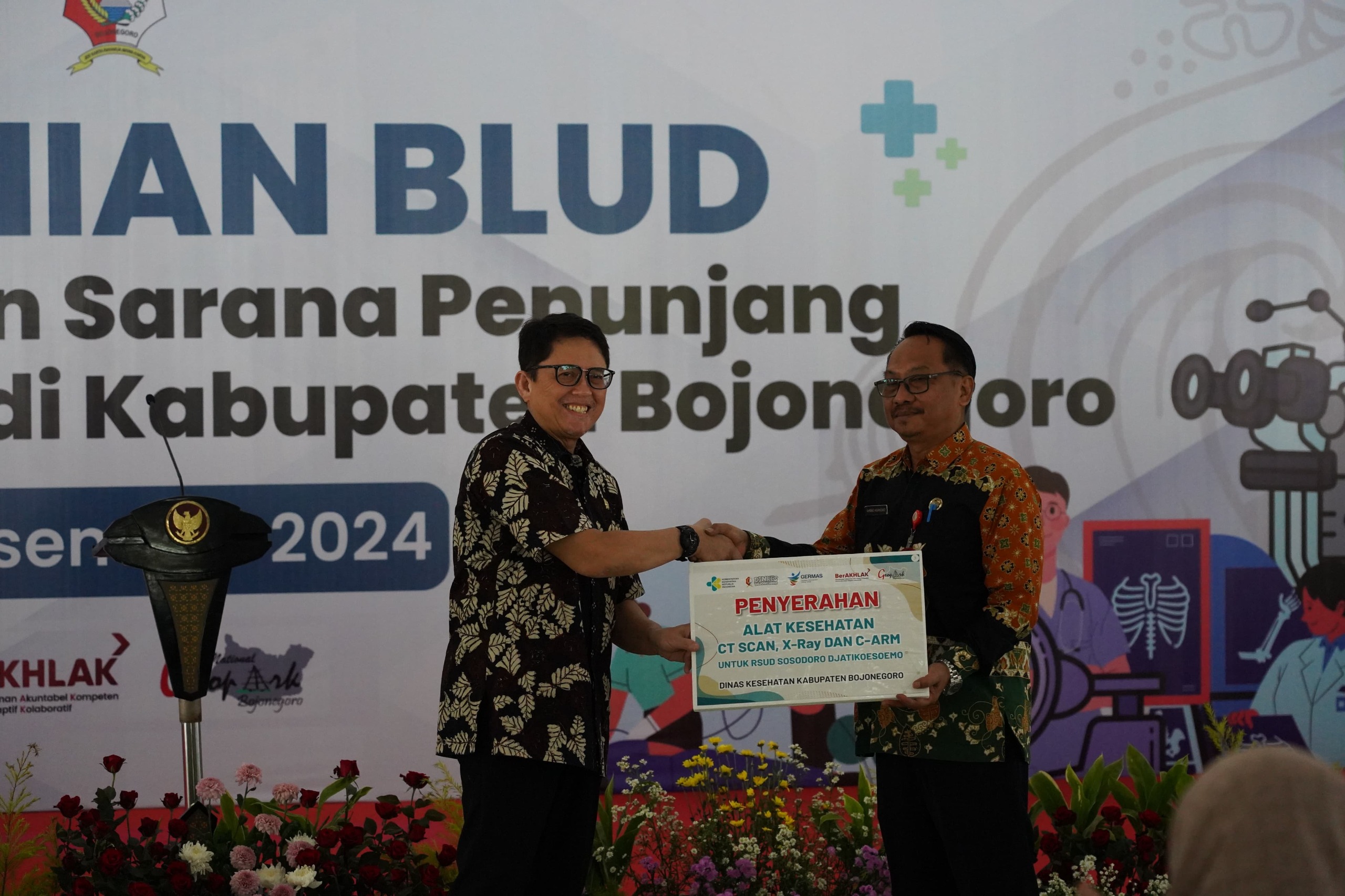 Jumat 27 Desember 2024, Pemerintah Kabupaten Bojonegoro meresmikan tiga puluh lima Puskesmas dan RSUD Kepohbaru menjadi BLUD disertai dengan penyerahan SK dan sarana penunjang fasilitas layanan kesehatan secara simbolis bertempat di Pendopo Malowopati. Peresmian di tandai dengan penombolan sirine oleh Pj Bupati Bojonegoro Adriyanto dibersamai oleh Kepala Dinas Kesehatan Ani Pujiningrum, dan Kepala BPKAD Luluk Alifah.