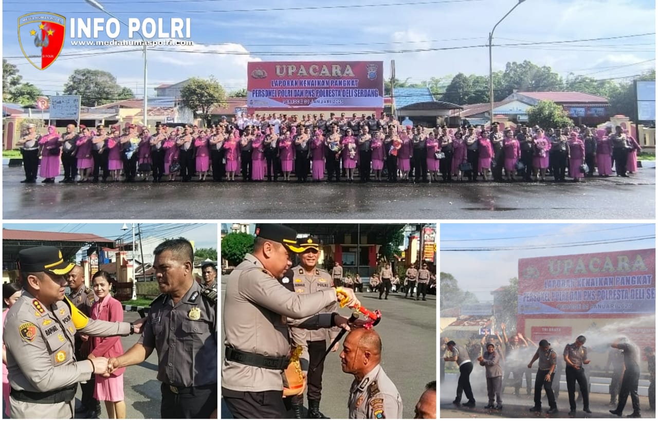 Polresta Deli Serdang melaksanakan upacara kenaikan pangkat setingkat lebih tinggi.