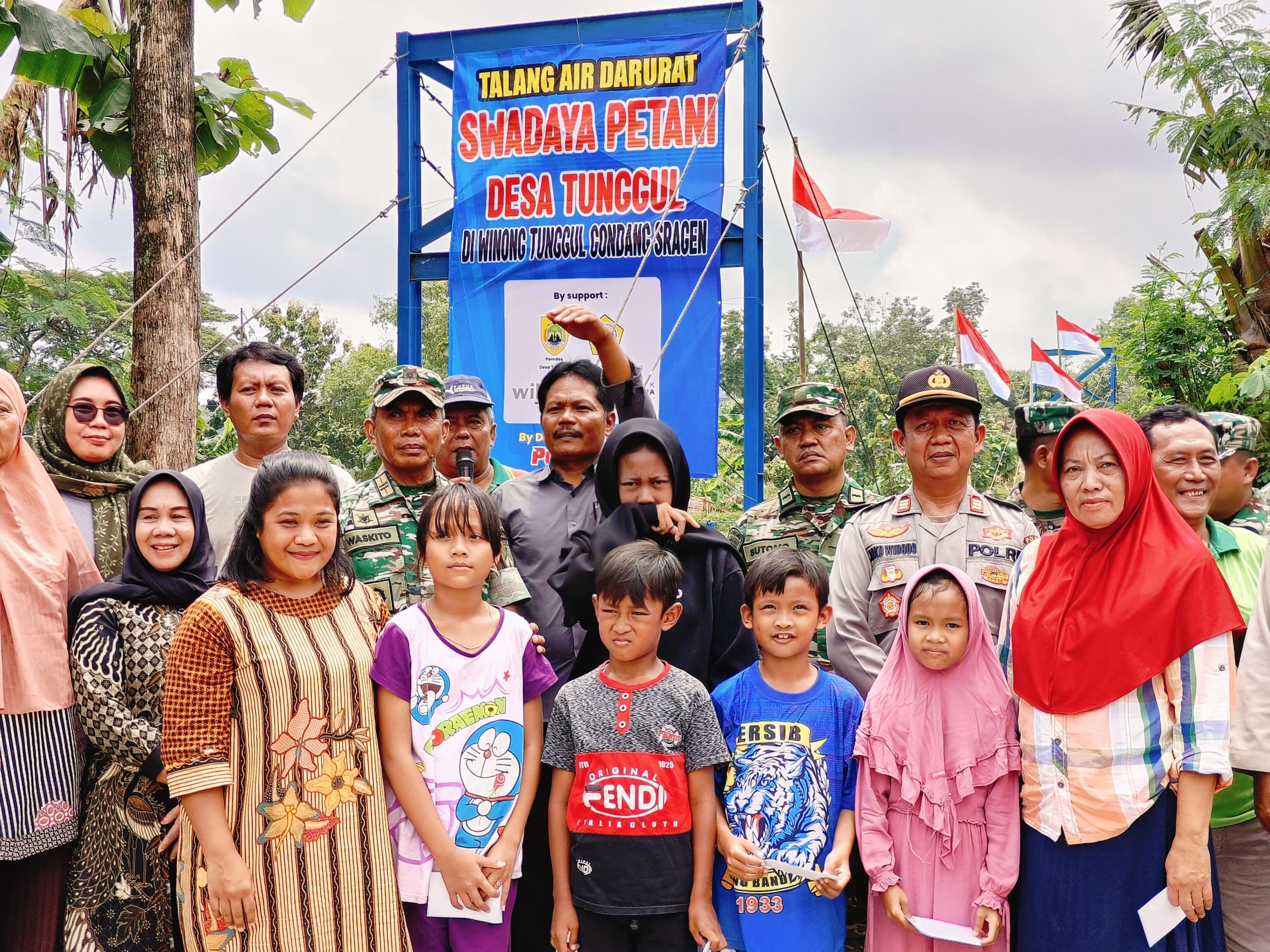 ” Akibat bendung winong jebol mengakibatkan 900 hektar lahan pertanian dan 740 petani terancam gagal panen, Alhamdulillah hari ini talang air kita resmikan dengan harapan para petani bisa menggarap lahan kembali”