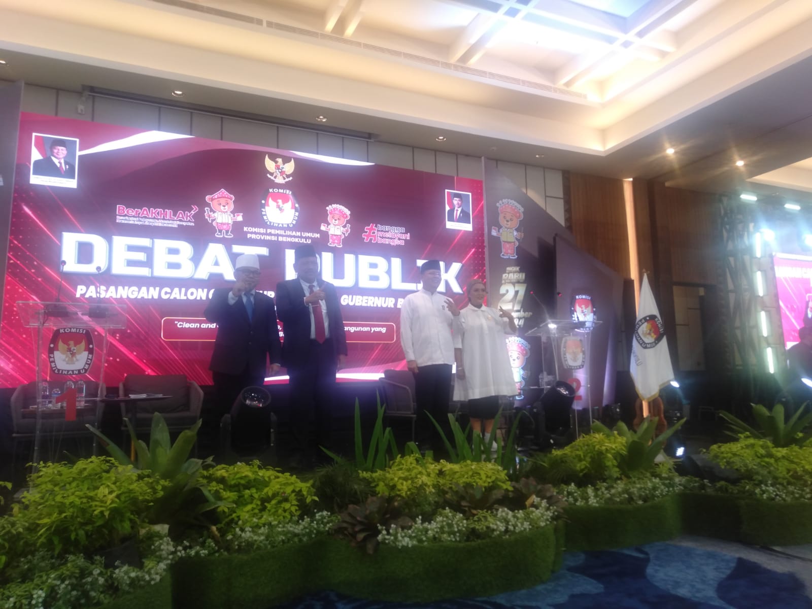 Debat kandidat Pasangan calon Gubernur dan Wakil Gubernur Provinsi Bengkulu tahun 2024 dengan tema “clean and good govermance, pemerataan pembangunan yang adil dan berkalanjutan” kembali di laksanakan oleh KPU Provinsi Bengkulu berempat di Hotel Mercure Kota Bengkulu 12/11/2024 dan di siarkan langsung oleh BETv, TVRI Bengkulu dan Radio Republik Indonesia Bengkulu.