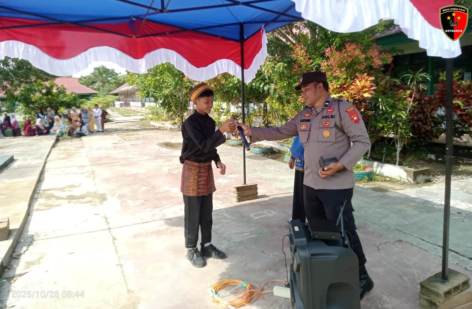 Memperingati Hari Sumpah Pemuda ke-97 tahun 2025, Polsek Sekayam melaksanakan kegiatan pembinaan karakter generasi muda melalui peran langsung sebagai pembina upacara bendera di MTSN 2 Sanggau, Dusun Balai Karangan, Kecamatan Sekayam, Kabupaten Sanggau, Selasa (28/10/2025) pagi.