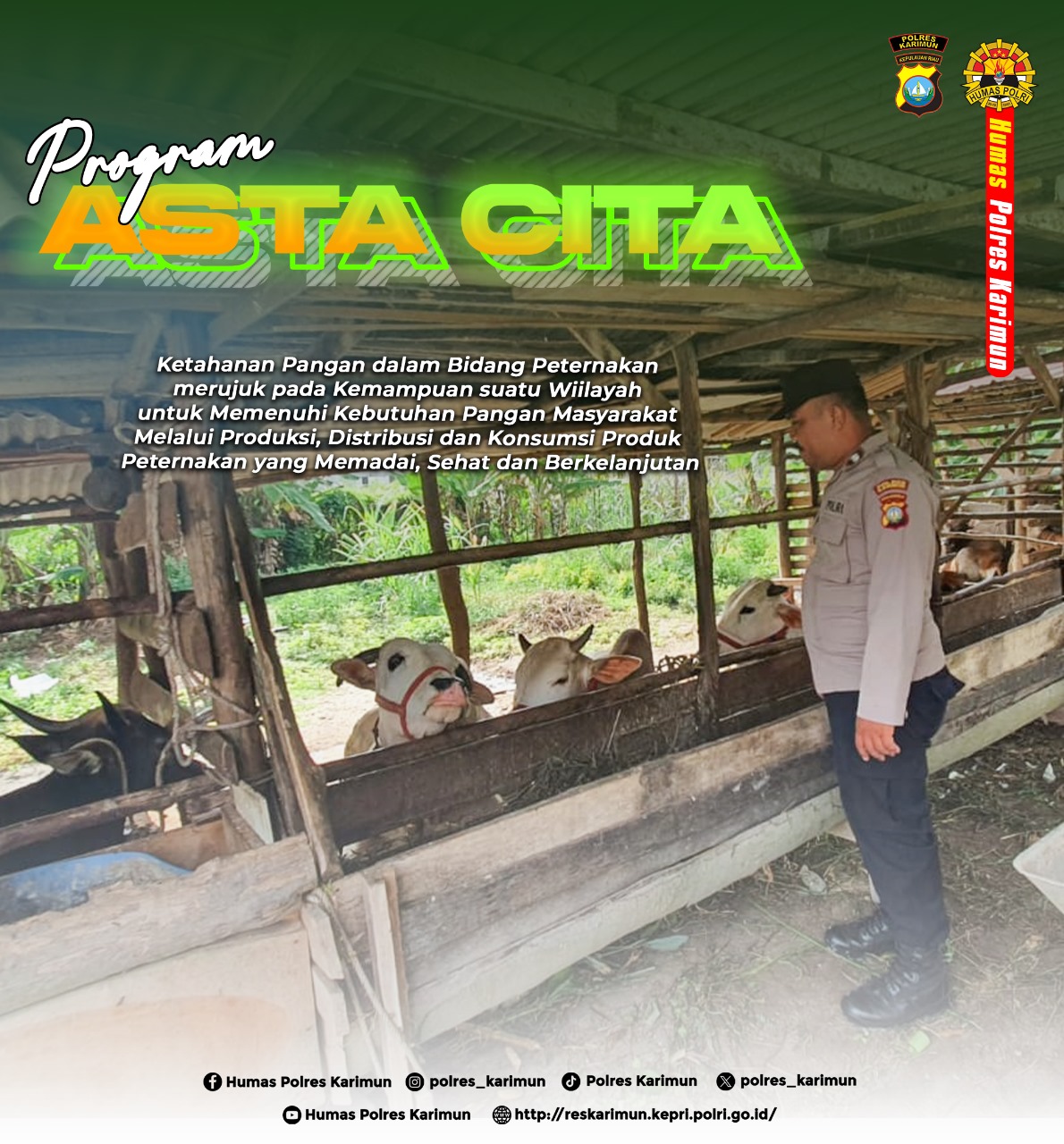 Dalam upaya mendukung Program Ketahanan Pangan Nasional, Bhabinkamtibmas Polsek Meral menyambangi lahan peternakan warga di RT 02 RW 01, Kelurahan Darussalam, Jumat (16/02). Kegiatan ini bertujuan mendorong warga agar memanfaatkan lahan kosong untuk meningkatkan produktivitas peternakan, khususnya di wilayah Kabupaten Karimun.