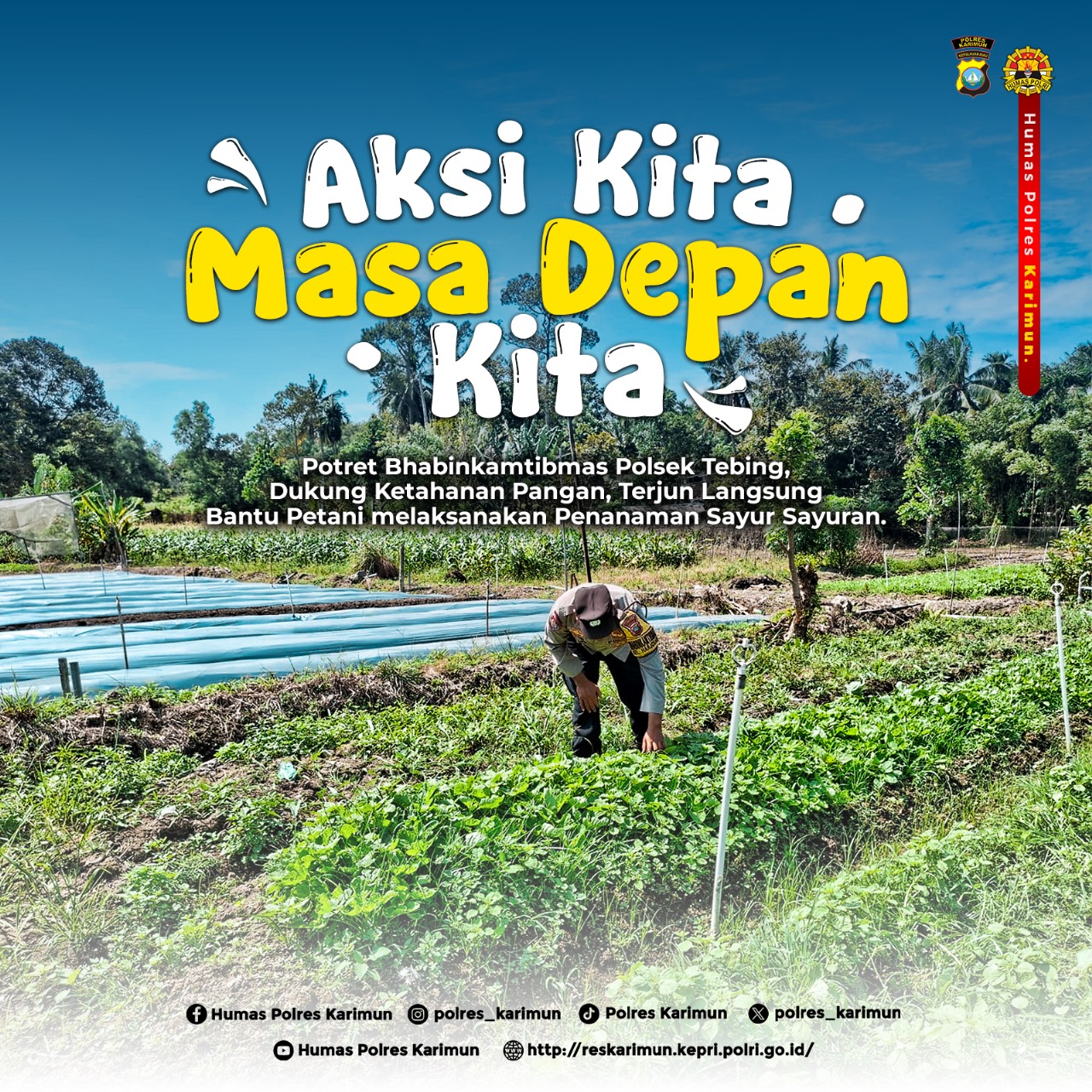 Dalam upaya mendukung Program Ketahanan Pangan Nasional, Bhabinkamtibmas Polsek Tebing menyambangi lahan pertanian warga di RT 03 RW 03, Kelurahan Harjosari, Jumat (14/02). Kegiatan ini bertujuan mendorong warga agar memanfaatkan lahan kosong untuk meningkatkan produktivitas pertanian, khususnya di wilayah Kabupaten Karimun.