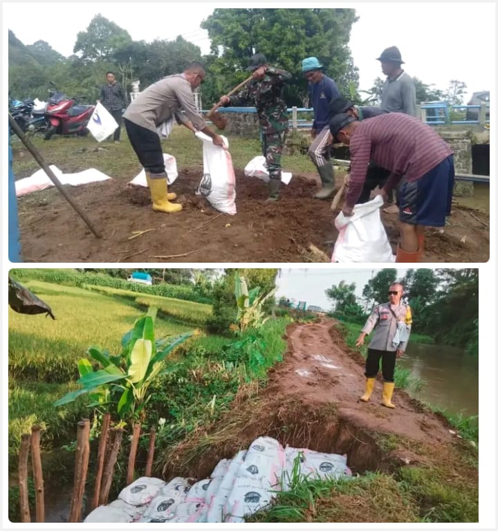 Seperti halnya yang dilakukan oleh Bhabinkamtibmas Desa Jambelaer Aiptu Hendra Gunawan, bergotong Royong membuat penahan tanah agar tidak tergerus oleh Air. Kamis ( 13 /03/2025 )