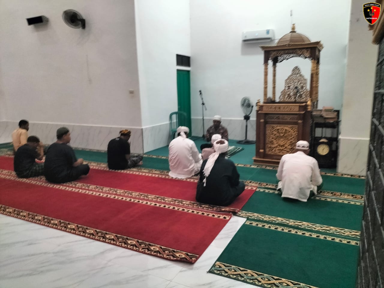 Polres Melawi Polda Kalbar Safafi Dakwah di lakukan Aiptu Suwardi usai pelaksanaan Sholat Magrib berjamaah di Masjid Al- Musyafirin Logpond PT.SBK NN Desa Popai Kecamatan Ella Hilir, Sabtu (26/7/25).