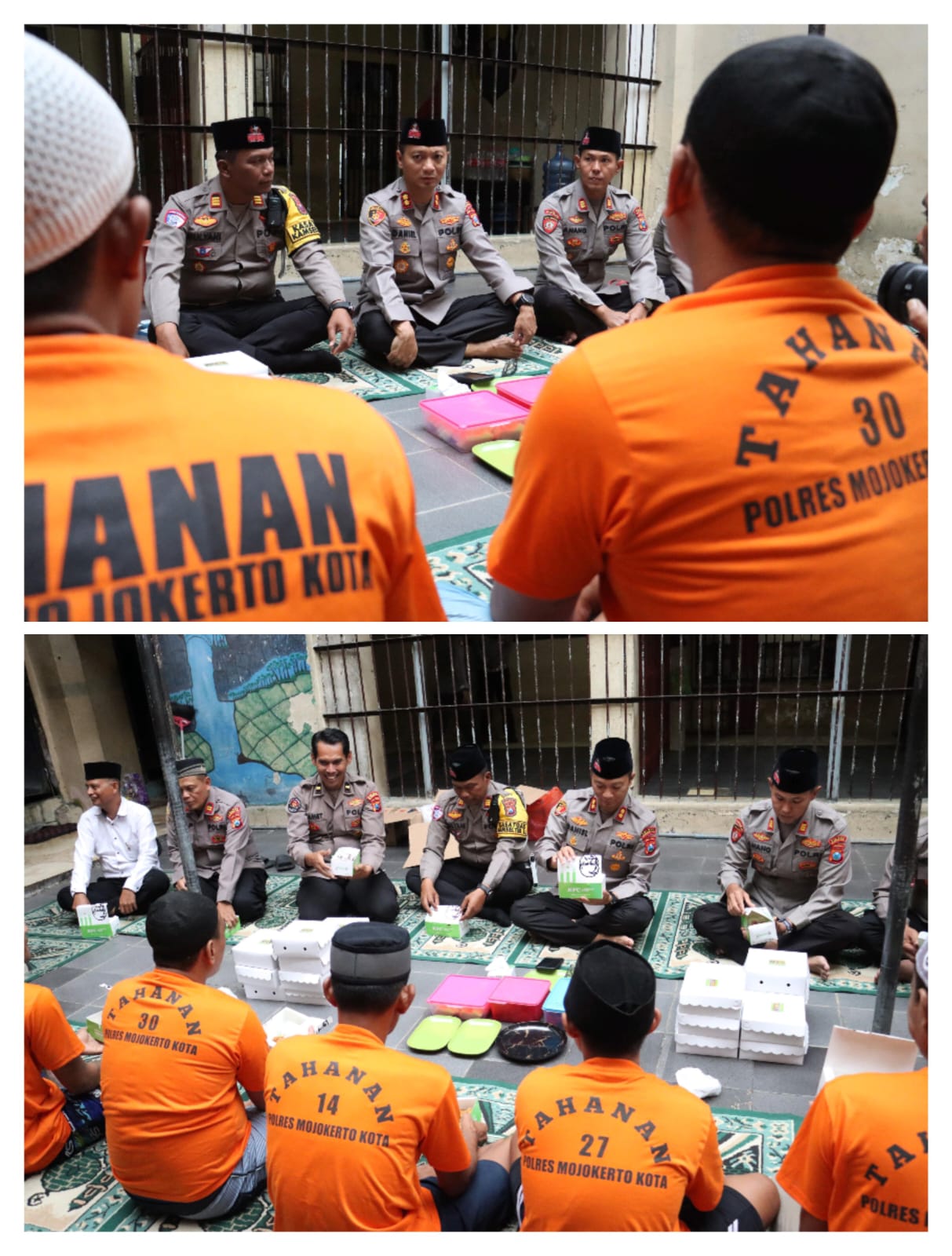Jelang waktu berbuka puasa, Kapolres Mojokerto Kota AKBP Daniel S. Marunduri S.I.K., M.H. ajak buka bersama tahanan Kota pada Jumat (16/03/2025)