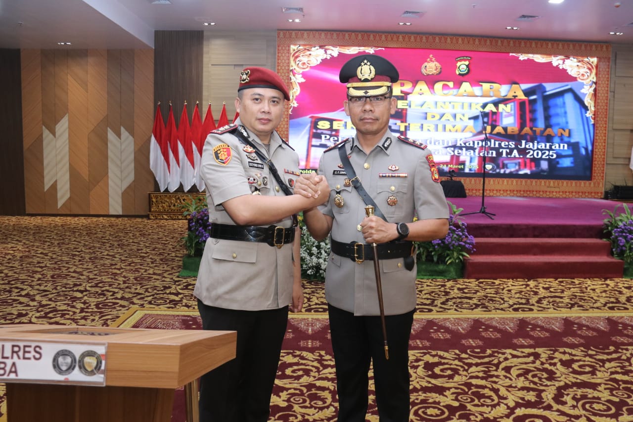 Kapolda Sumsel Irjen Pol Andi Rian Ryacudu Djajadi memimpin upacara serah terima jabatan (sertijab) kapolres muba dan beberapa pejabat polda sumsel lainnya di gedung Mapolda Sumsel. Senin (24/03/25).