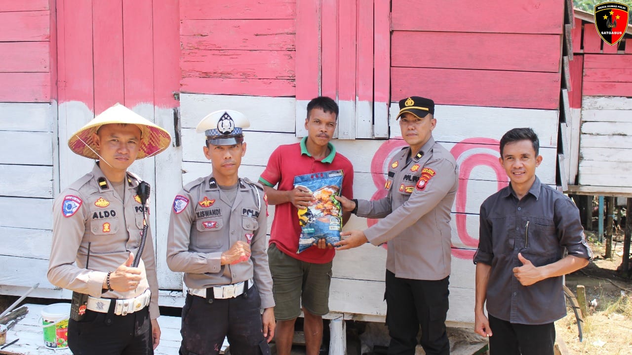 Tak hanya mengecat rumah, dalam kesempatan yang sama, Satlantas Polres Sekadau juga menyalurkan bantuan sembako berupa beras 5 kg kepada Saharaudin. Bantuan diserahkan langsung oleh IPDA Firmansyah sebagai bagian dari program rutin “Jumat Berkah”. ( Lies )
