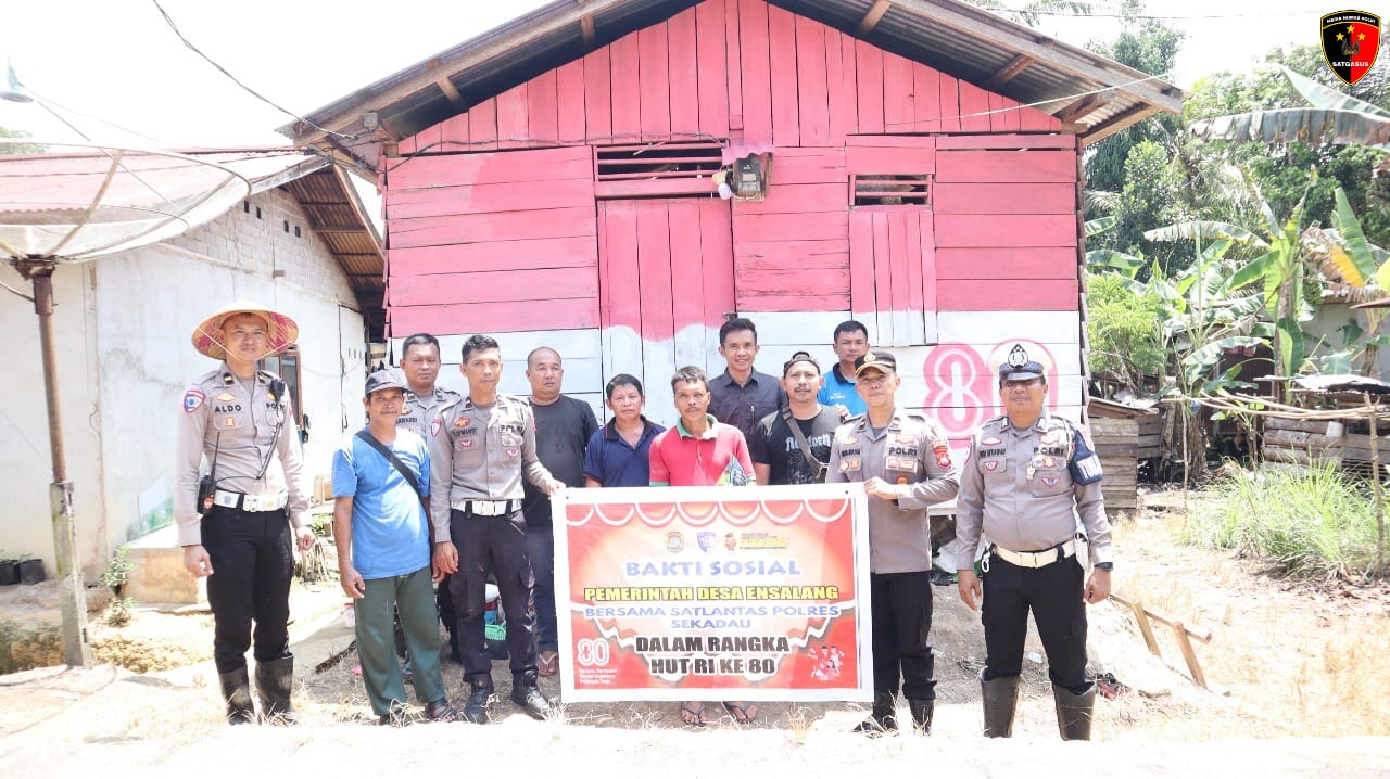 Menyambut Hari Ulang Tahun ke-80 Republik Indonesia, jajaran Satlantas Polres Sekadau punya cara unik untuk berbagi dan menumbuhkan semangat kemerdekaan. Lewat program “Polantas Menyapa”, mereka mengecat rumah warga kurang mampu di Dusun Ensali, Desa Ensalang, Kecamatan Sekadau Hilir, Kabupaten Sekadau, Jumat (8/8/2025).