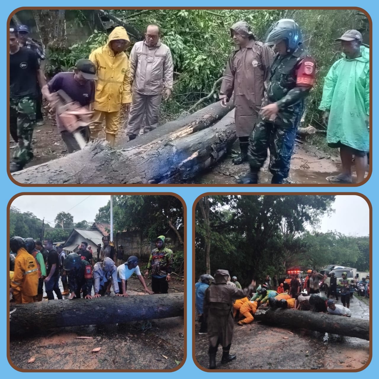 Dengan tidak mengenal lelah dan di guyur hujan begitu deras Anggota Polsek Kalijati , anggota Koramil Kalijati , PUPR dan Pol PP. Serta BPBD, berjibaku melakukan pemotongan pohon yang tumbang memakai Senso agar bisa di pindahkan ke pinggir jalan.