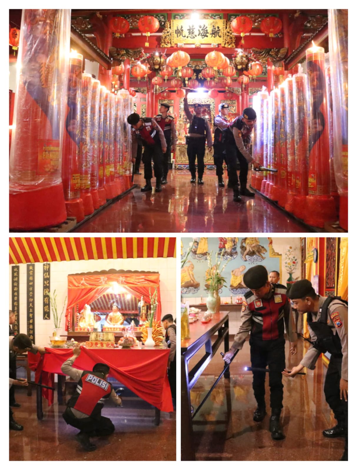 Bahkan Kasat Samapta Polres Mojokerto Kota AKP Anang Leo terjun langsung untuk memastikan kondisi di Klenteng, dengan melihat setiap sudut yang ada di sana.