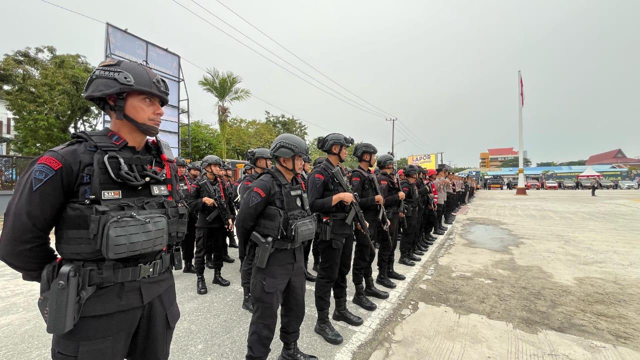 Untuk menjamin keamanan menjelang Hari Raya Idul Fitri, personel 1 SST Batalyon A Pelopor bersama aparat terkait melaksanakan apel gabungan di Mapolresta Balikpapan. Minggu (30/3/2025).