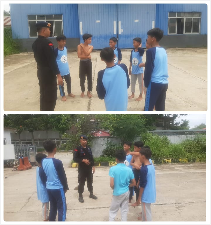 Brigadir Agung Tri menghampiri anak-anak yang sedang bermain dan memberikan penjelasan mengenai potensi bahaya yang dapat terjadi jika mereka tetap berada di area proyek.