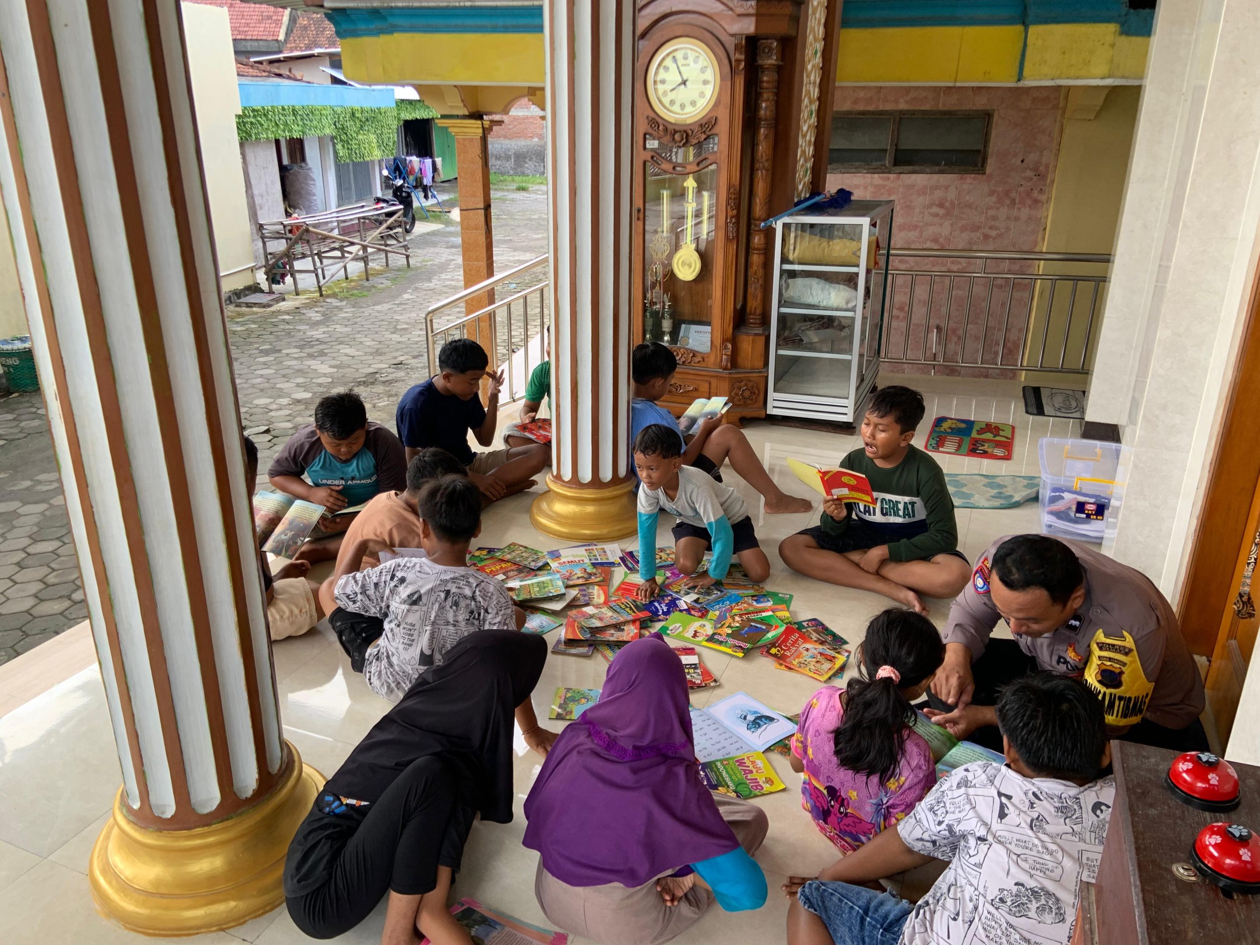 Hal ini di lakukan dalam rangka meningkatkan minat membaca pada anak-anak di lingkungan desa binaannya, Kali ini Bhabinkamtibmas melaksanakan kegiatan perpustakaan keliling berada di lingkungan RT.01/01.Minggu (05/01/2025).