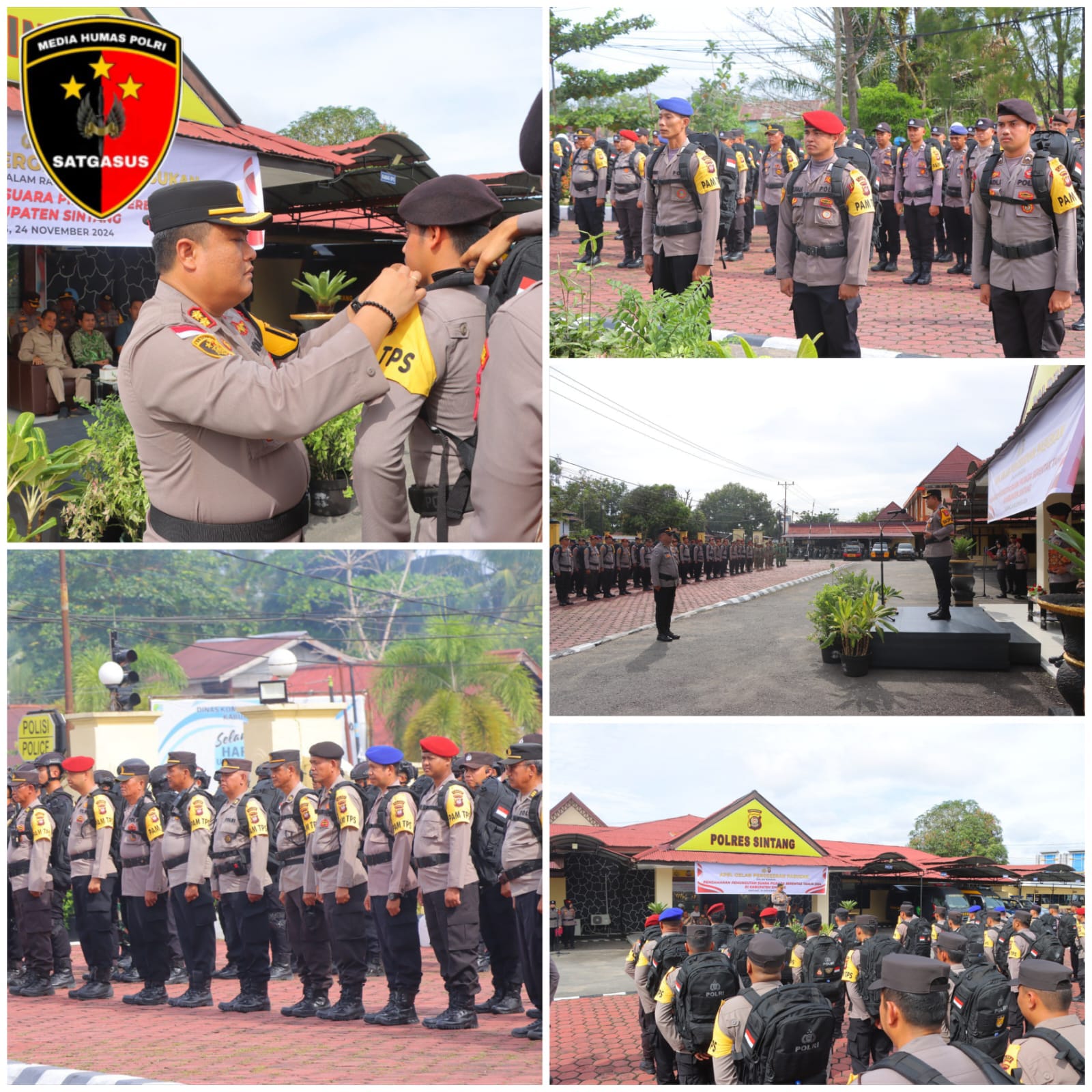 Polres Sintang melaksanakan apel gelar pergeseran pasukan jelang pengamanan pemungutan suara Pilkada Serentak tahun 2024. Minggu ( 24/11/24 ) Pagi.