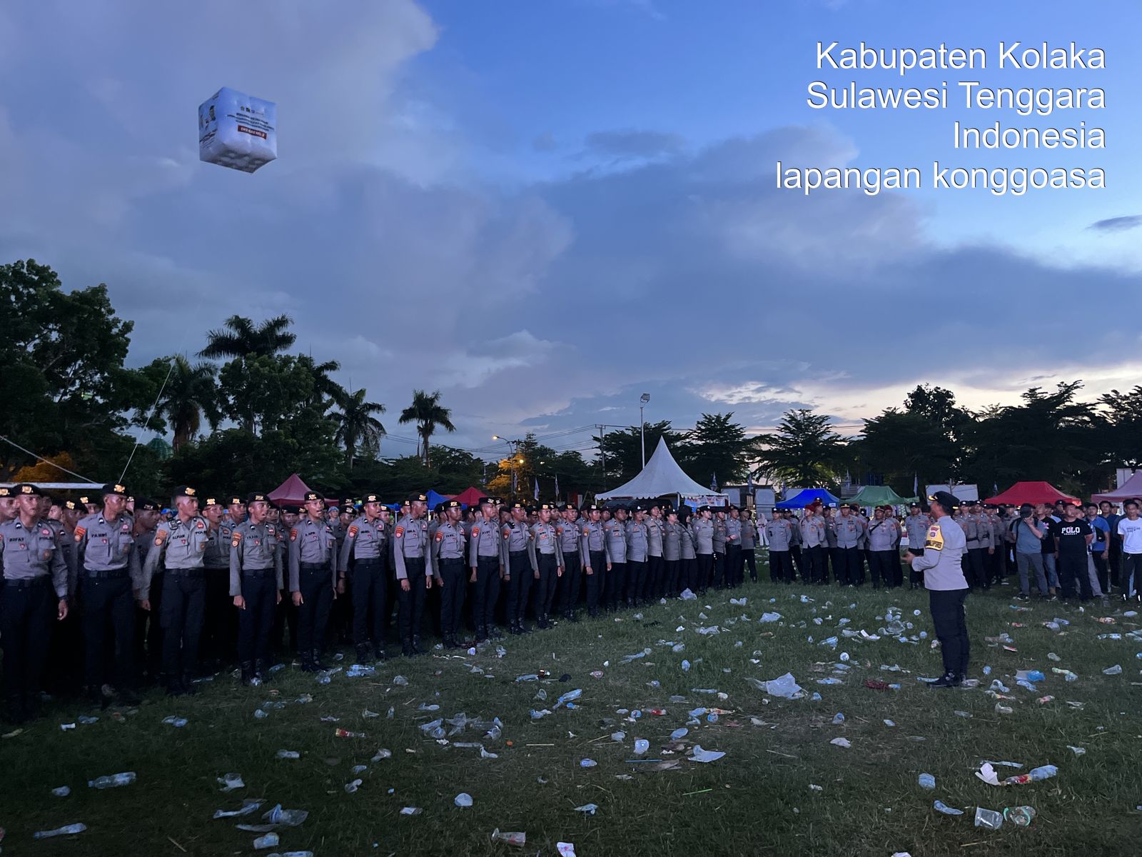 Subsatgas Pam Objek Kegiatan Zona A melaksanakan apel konsolidasi pengamanan kampanye terbuka pasangan calon Gubernur dan Wakil Gubernur Sulawesi Tenggara. Kegiatan ini berlangsung di Lapangan Kongoasa, Kecamatan Kolaka, Kabupaten Kolaka, pada Minggu (17/11) pukul 18.00 WITA hingga selesai.