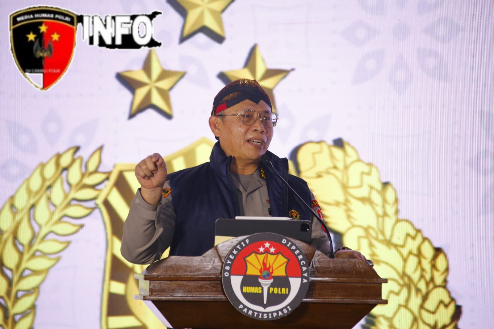 Dalam sambutannya, Irjen Pol. Anwar mengawali dengan ucapan terima kasih kepada para pihak yang mendukung pelaksanaan Rakernis, termasuk yang hadir dari Kantor Komunikasi Kepresidenan Republik Indonesia.