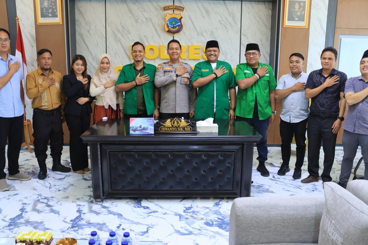 Bertempat di Markas Komando (Mako) Polres Kotamobagu jalan Paloko Kinalang, Kapolres Kotamobagu AKBP Irwanto, SIK, MH menerima kunjungan pengurus gerakan pemuda (GP) Anshor Kota Kotamobagu, Rabu (21/5/2025).