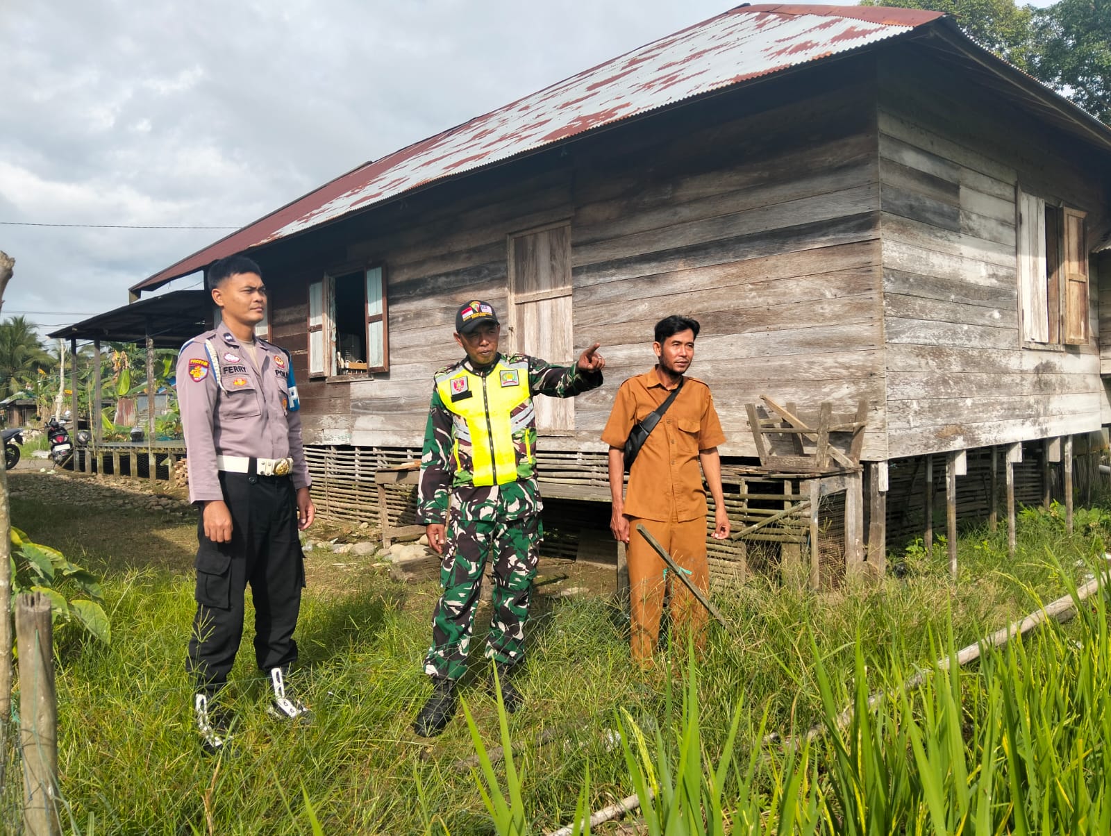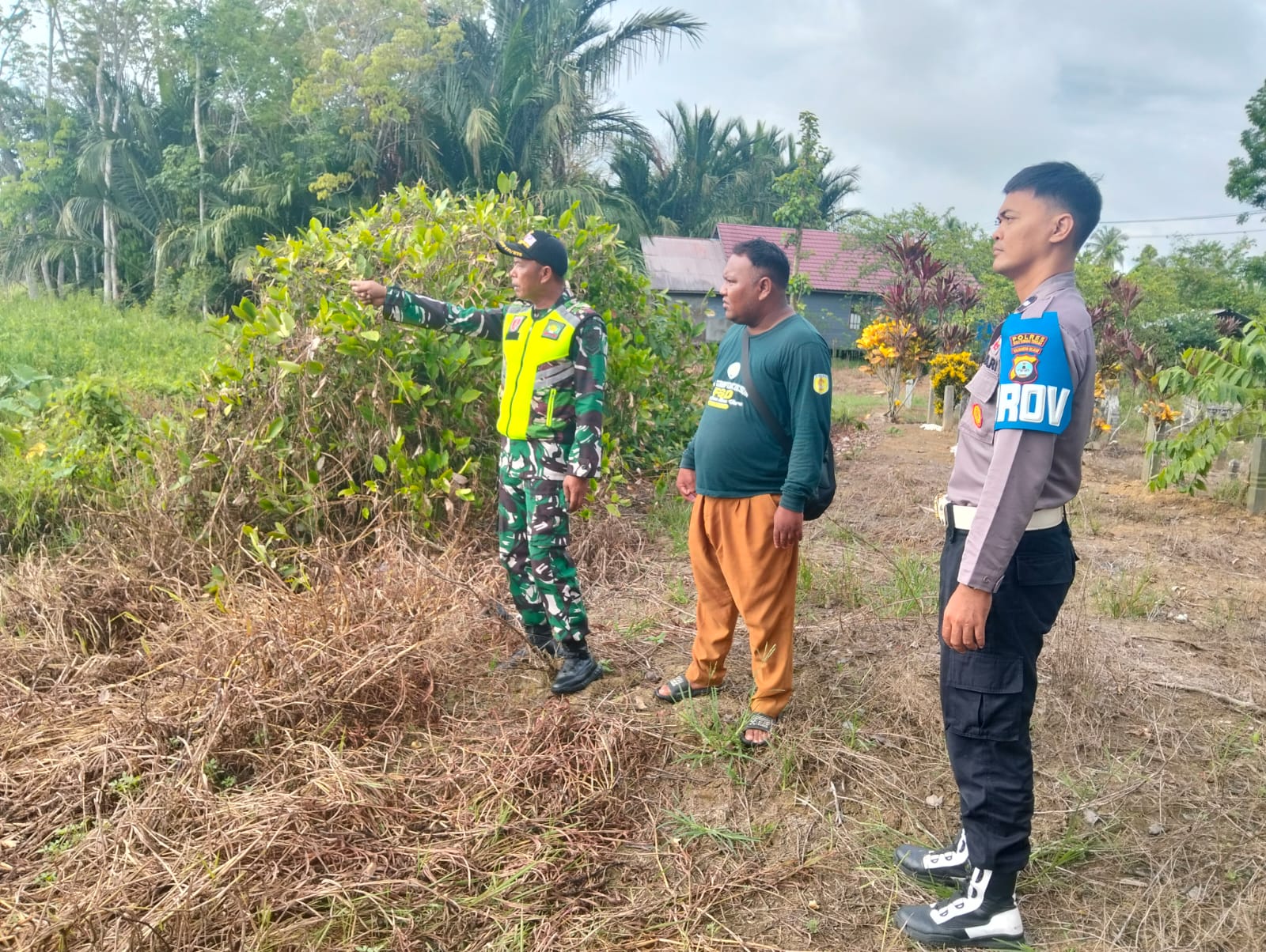 Babinsa Koramil 1002-08/Labuan Amas Utara (LAU) Serda Aspiani bersama Bhabinkamtibmas dan warga masyarakat Desa Binjai Pirua melaksanakan patroli pencegahan kebakaran hutan dan lahan (Karhutla), Selasa (12/8/2025).