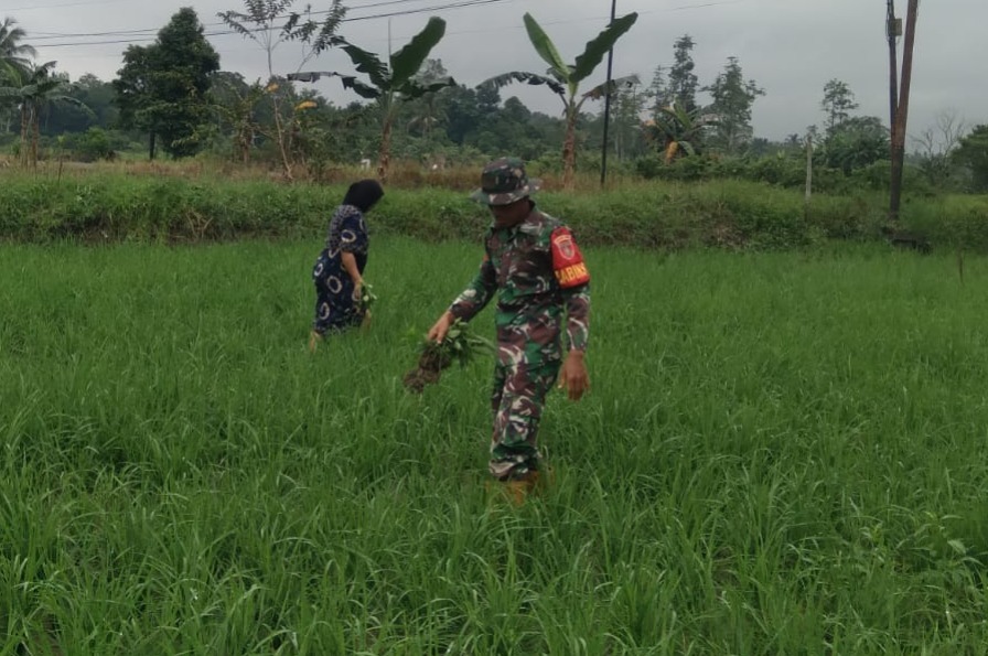 Koptu Suriansyah terjun langsung ke lahan seluas 0,4 hektare milik Ibu Munah untuk membantu merawat tanaman padi jenis Empari dari serangan hama gulma. Kegiatan ini merupakan bagian dari upaya Babinsa dalam mendukung ketahanan pangan di wilayah binaannya, sekaligus mempererat hubungan dengan masyarakat.