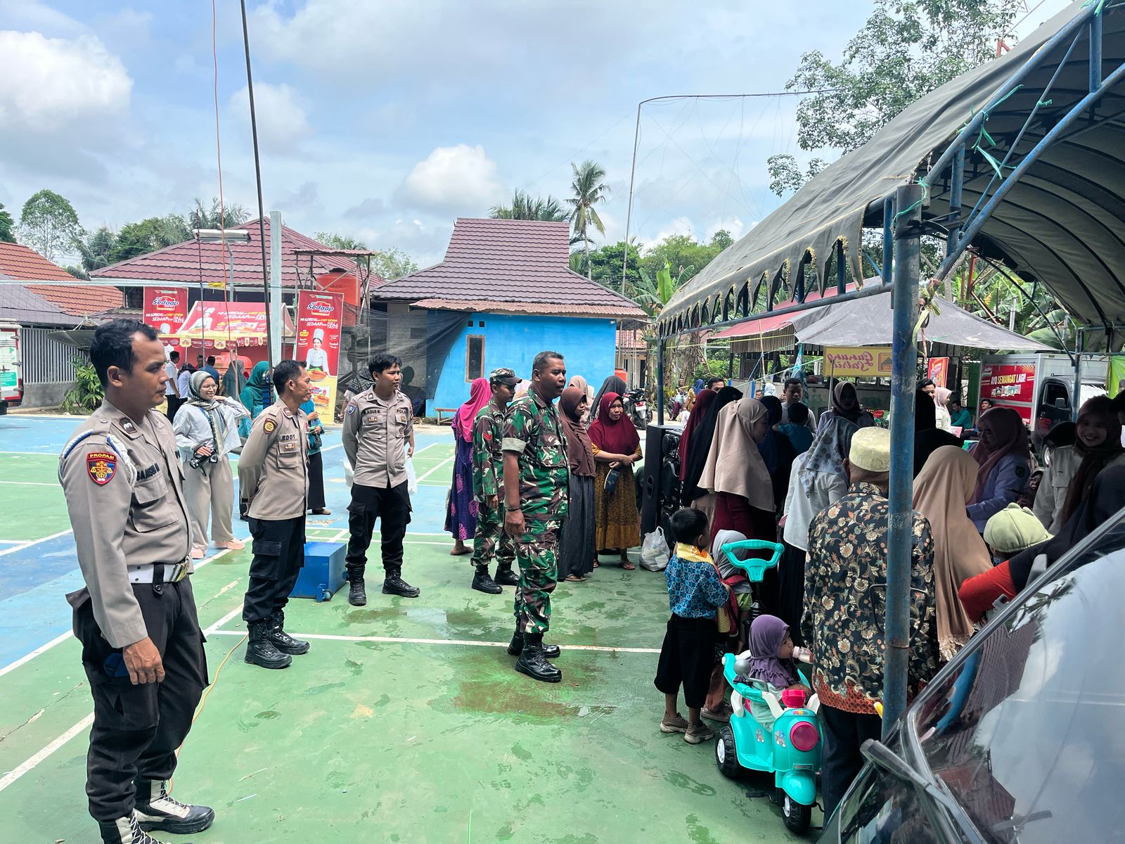 Babinsa Koramil 1001-05/Lampihong Serda Sugeng Riyadi monitoring kegiatan operasi pasar murah dari Dinas Perindustrian dan Perdagangan Kabupaten Balangan dalam rangka memerangi inflasi di wilayah Kabupaten Balangan, Bertempat di halaman Kantor Desa Lajar, Kecamatan Lampihong, Kabupaten Balangan. Rabu (19/02/2025).