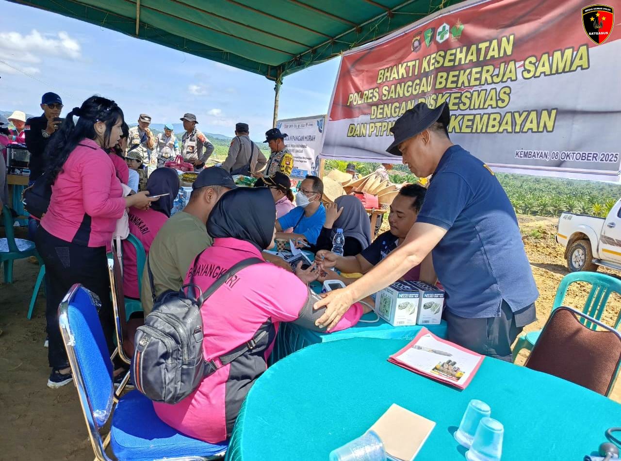 Kegiatan tersebut berlangsung di area tenda lokasi Gertam Jagung yang dipimpin oleh PS. Kasi Dokes Polres Sanggau, Aiptu Surip Sunaryo, bekerja sama dengan tenaga medis dari Puskesmas Kembayan serta pihak PTPN IV Regional V Kembayan.