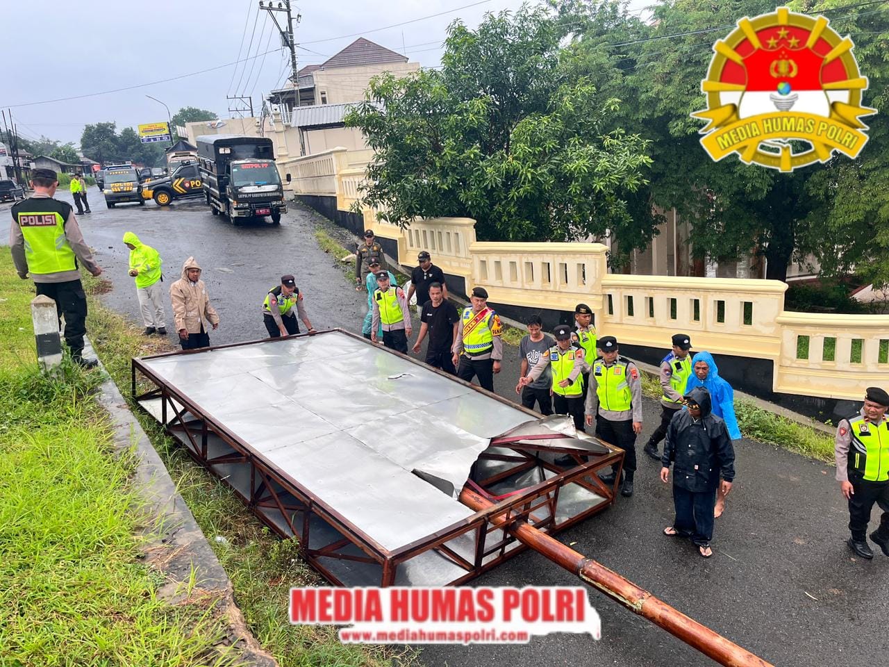 Setibanya di lokasi, petugas melakukan koordinasi dengan Satpol PP dan unsur terkait. Evakuasi baliho dilakukan secara manual dengan melibatkan Pleton Siaga Bhayangkara, personel Satpol PP dan dibantu warga sekitar. Proses penyingkiran berjalan cepat dan badan jalan kembali terbuka sehingga lalu lintas bisa normal kembali.