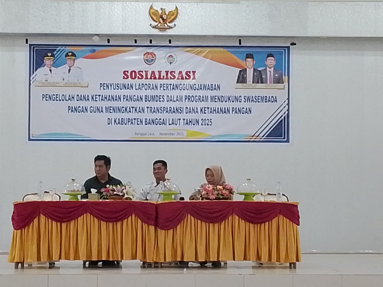 Pemerintah Kabupaten Banggai Laut, Sulawesi Tengah, menggelar kegiatan sosialisasi penyusunan laporan pertanggungjawaban pengelolaan dan ketahanan pangan, serta Badan Usaha Milik Desa (BUMDes) dalam program mendukung swasembada pangan. Acara ini berlangsung di Gedung Pertemuan Labotan Sosodek Banggai Laut pada hari Kamis.