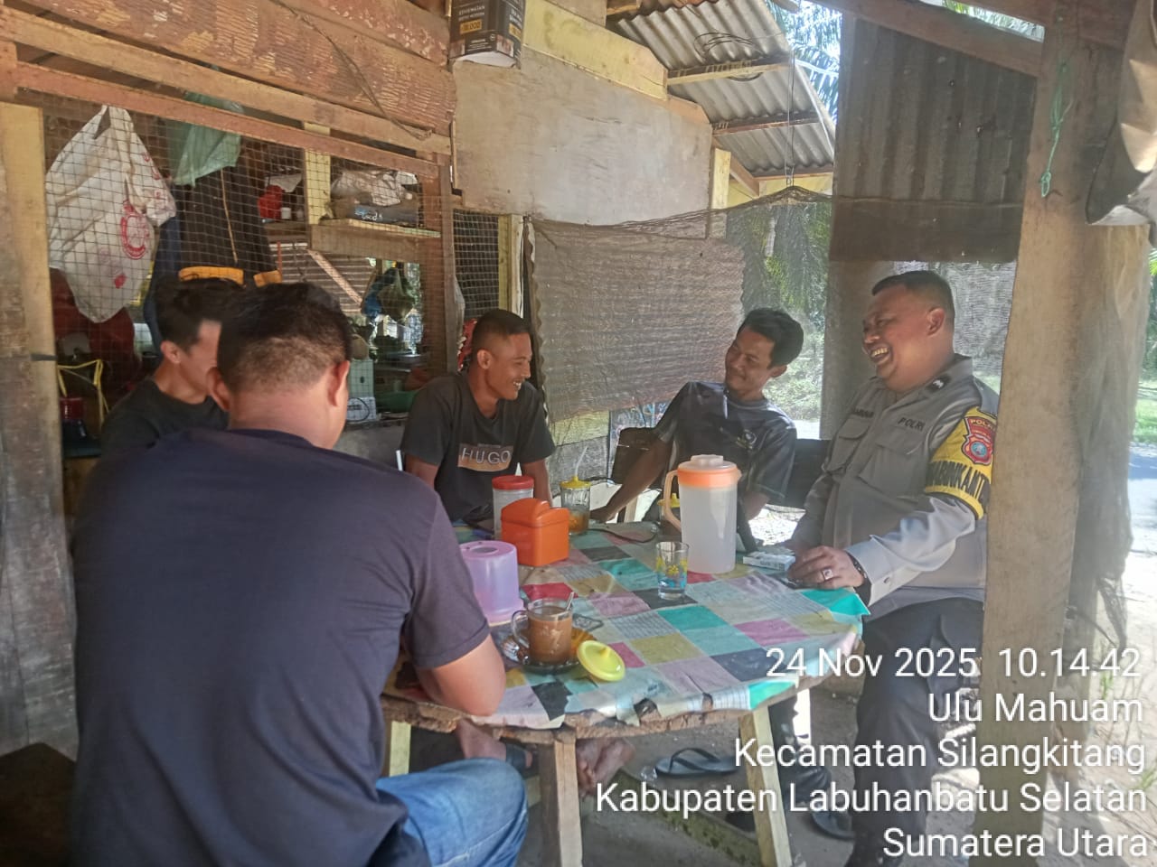 Bhabinkamtibmas Polsek Silangkitang Aipda Reynold Adi Wijaya melaksanakan kegiatan Door to Door System (DDS), sambang, sosialisasi dan edukasi kepada warga Dusun Guntur, Desa Aek Goti, Kecamatan Silangkitang, Kabupaten Labuhanbatu Selatan, Senin (24/11/2025).