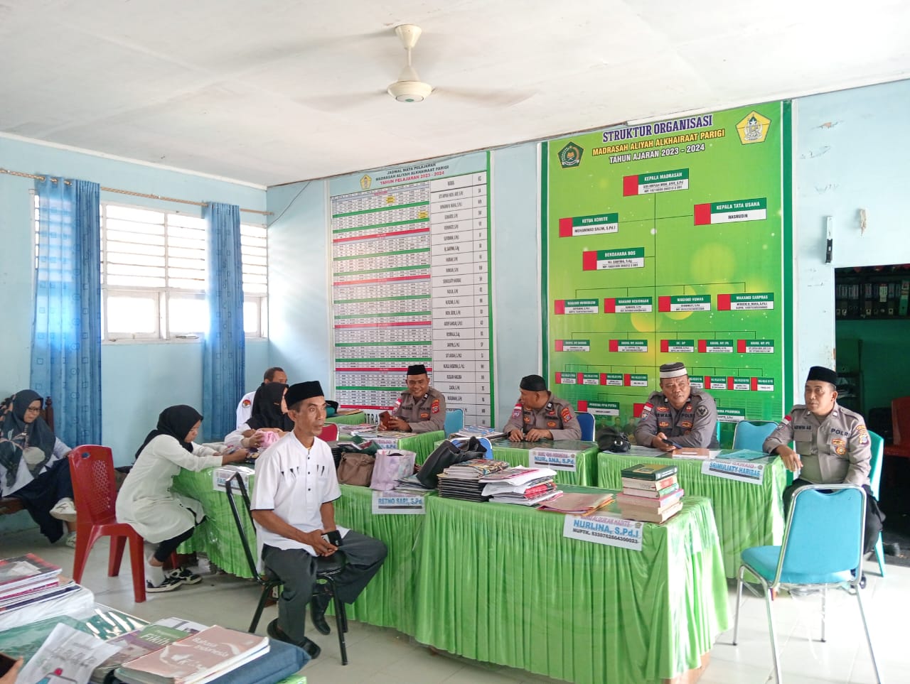 Satgas II Preemtif Ops Madago Raya melalui tim Da’i Polri melaksanakan kegiatan Sambang dan Silaturahmi dengan Kepala Sekolah (Kepsek) dan Dewan Guru Madrasah Aliyah Alkhairaat Parigi di ruang rapat Dewan Guru, Kelurahan Masigi, Kecamatan Parigi, Kabupaten Parigi Moutong, pada Senin (10/2/2025).