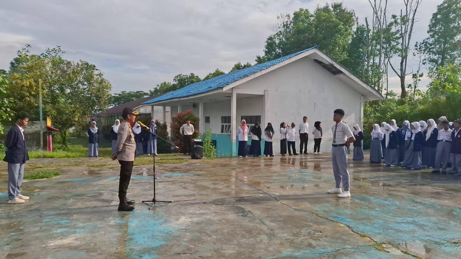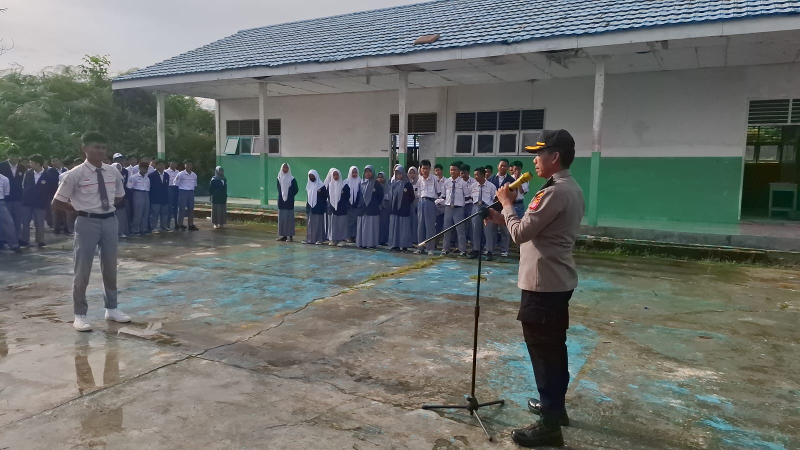Polri hadir untuk masyarakat. Kami berkomitmen mengawal kamtibmas yang kondusif agar para pelajar dapat belajar dengan aman dan nyaman. Rakyat berdaulat, Polri kuat,” tegas Ipda Sangidun.