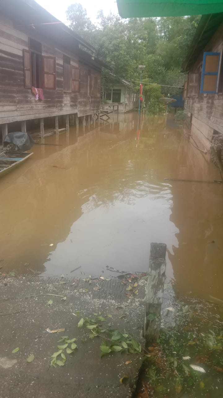 Desa Umaq Dian – sebagian jalan pemukiman terendam ±40 cm.