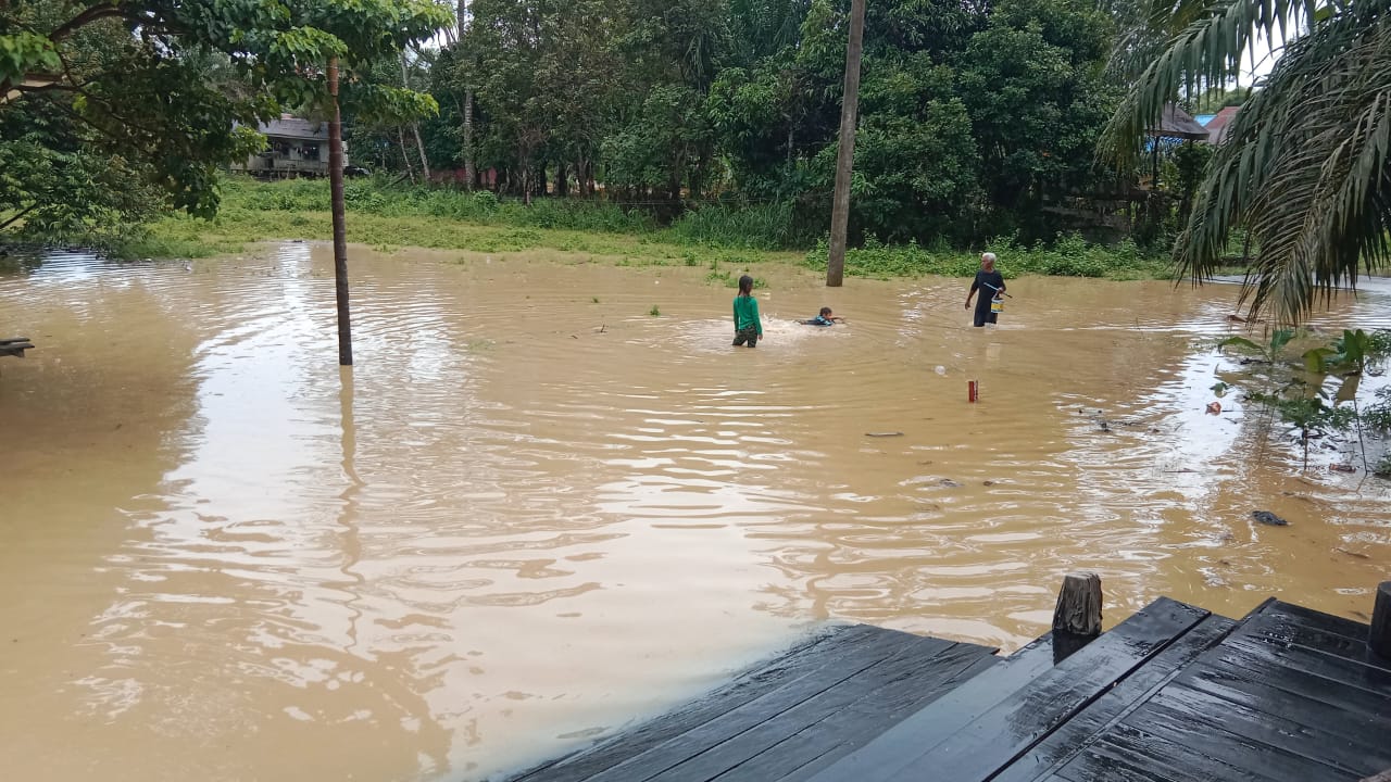 Desa Muara Pedohon – hampir seluruh akses jalan terendam ±40 cm.