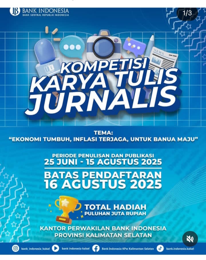 Bank Indonesia Kalsel kembali hadir dengan Kompetisi Karya Tulis Jurnalis 2025.