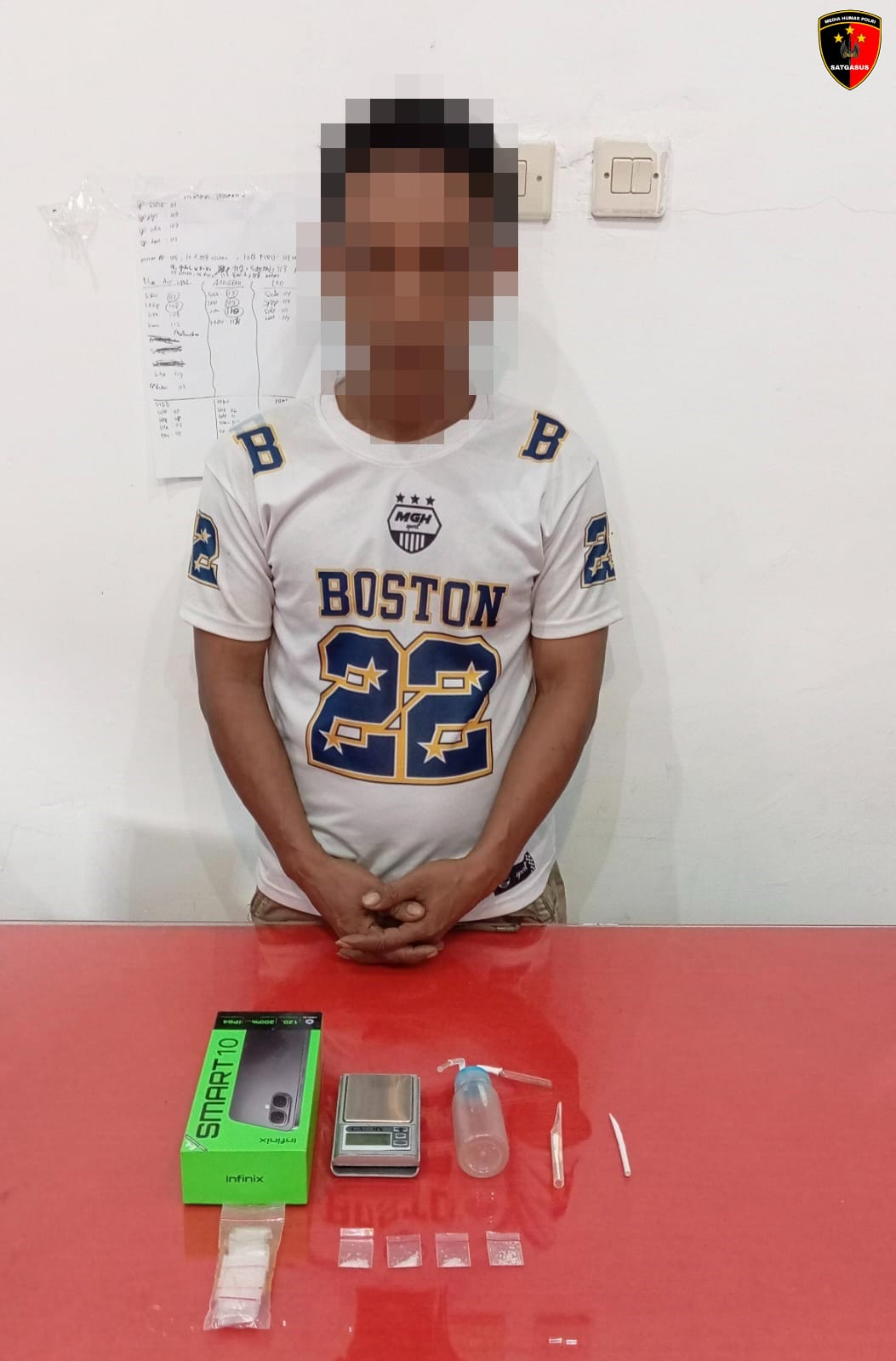 “ Dari informasi tersebut, petugas langsung ke rumah kost yang dimaksud untuk melakukan penyelidikan. Sesampainya di dalam rumah kost, petugas menemukan dua orang pelaku yaitu S (41) dan R (25) yang dengan disaksikan beberapa warga setempat, petugas langsung melakukan penggeledahan dari kedua pelaku dan mendapati barang bukti berupa 1 buah timbangan elektrik, 2 buah sedotan plastik modifikasi, 1 buah alat hisap Sabu bong serta 4 lembar plastik klip bening yang berisikan narkotika jenis sabu dengan berat bruto 0,68 gram. Kedua pelaku mengakui bahwa barang haram tersebut didapati dari seorang wanita di daerah Desa Botuh Bosi Kecamatan Simpang Hulu ” papar Aris
