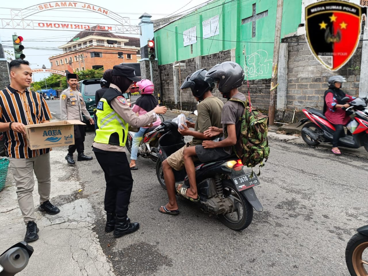 Kapolsek Wonogiri Kota AKP Sandiya, S.H., menyampaikan bahwa kegiatan berbagi takjil ini merupakan bentuk nyata kepedulian Polri kepada masyarakat, khususnya bagi umat muslim yang sedang menjalankan ibadah puasa.